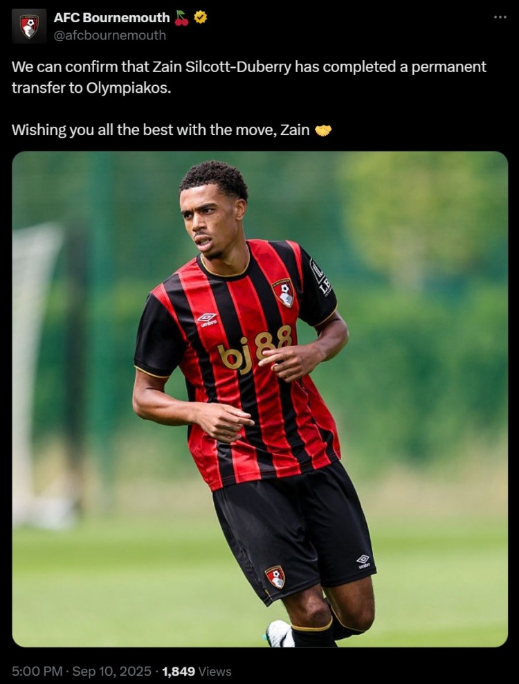 官方:伯恩茅斯20岁边锋杜伯里永久转会至奥林匹亚科斯 xiaoqiao 2026年01月16日 13:07 74 0 9月10日讯 伯恩茅斯官方确认,杜伯里永久转会至奥林匹亚科斯。这名20岁的球员司职左边锋,于今年1月以自由身加盟伯恩茅斯U21。截止目前,杜伯里代表伯恩茅斯一线队出战过两场比赛,德转身价20万欧。